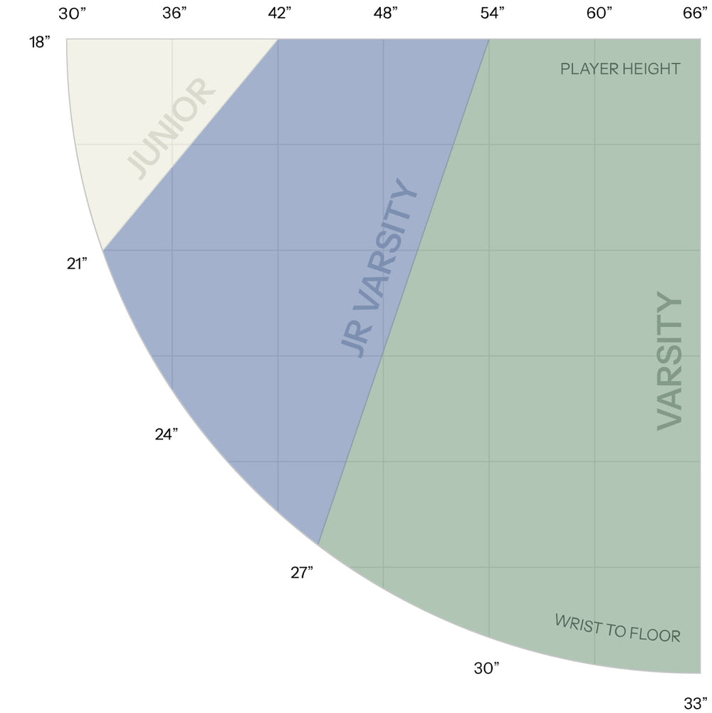 Detailed dimensions for Junior, JV, and Varsity club sets.